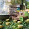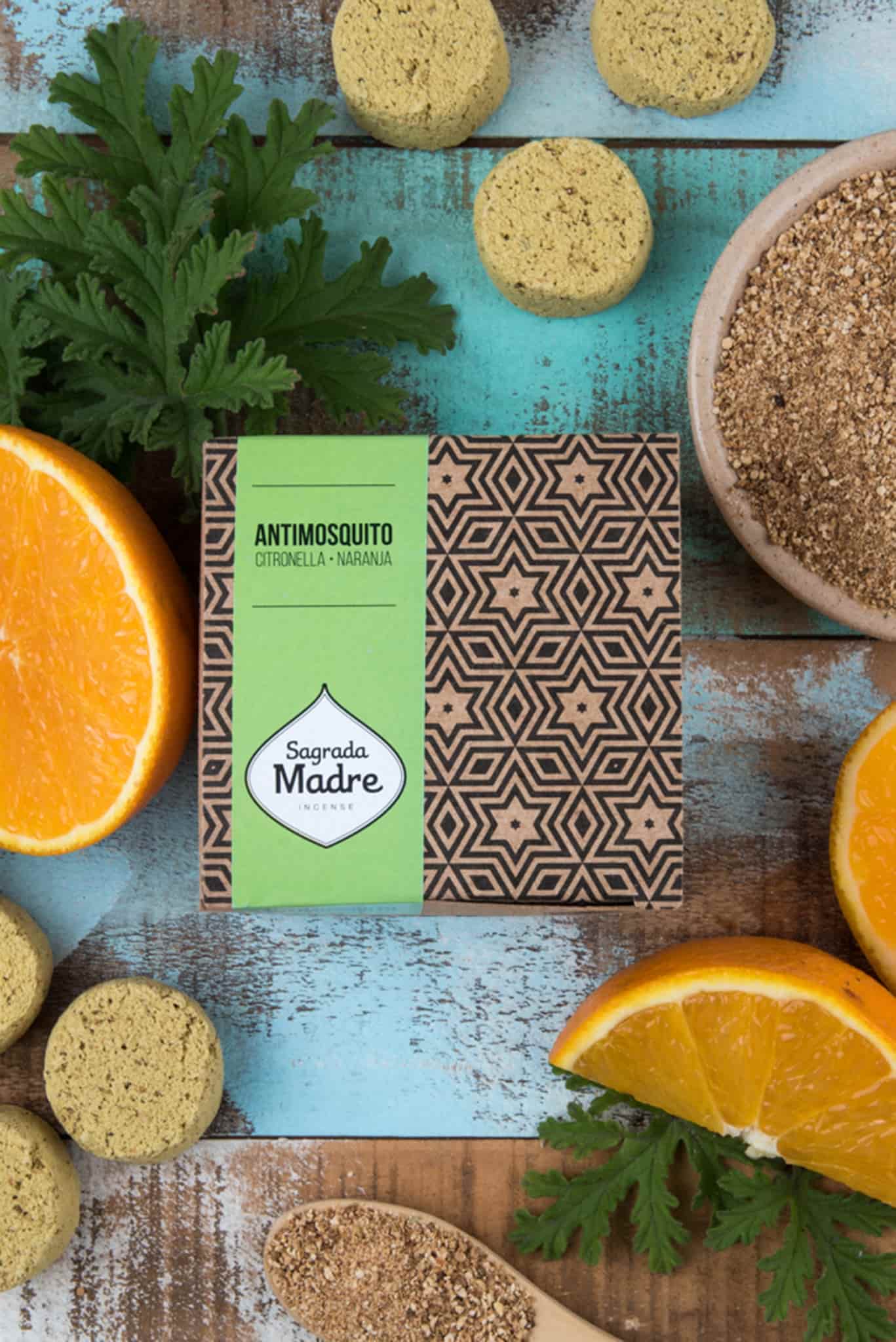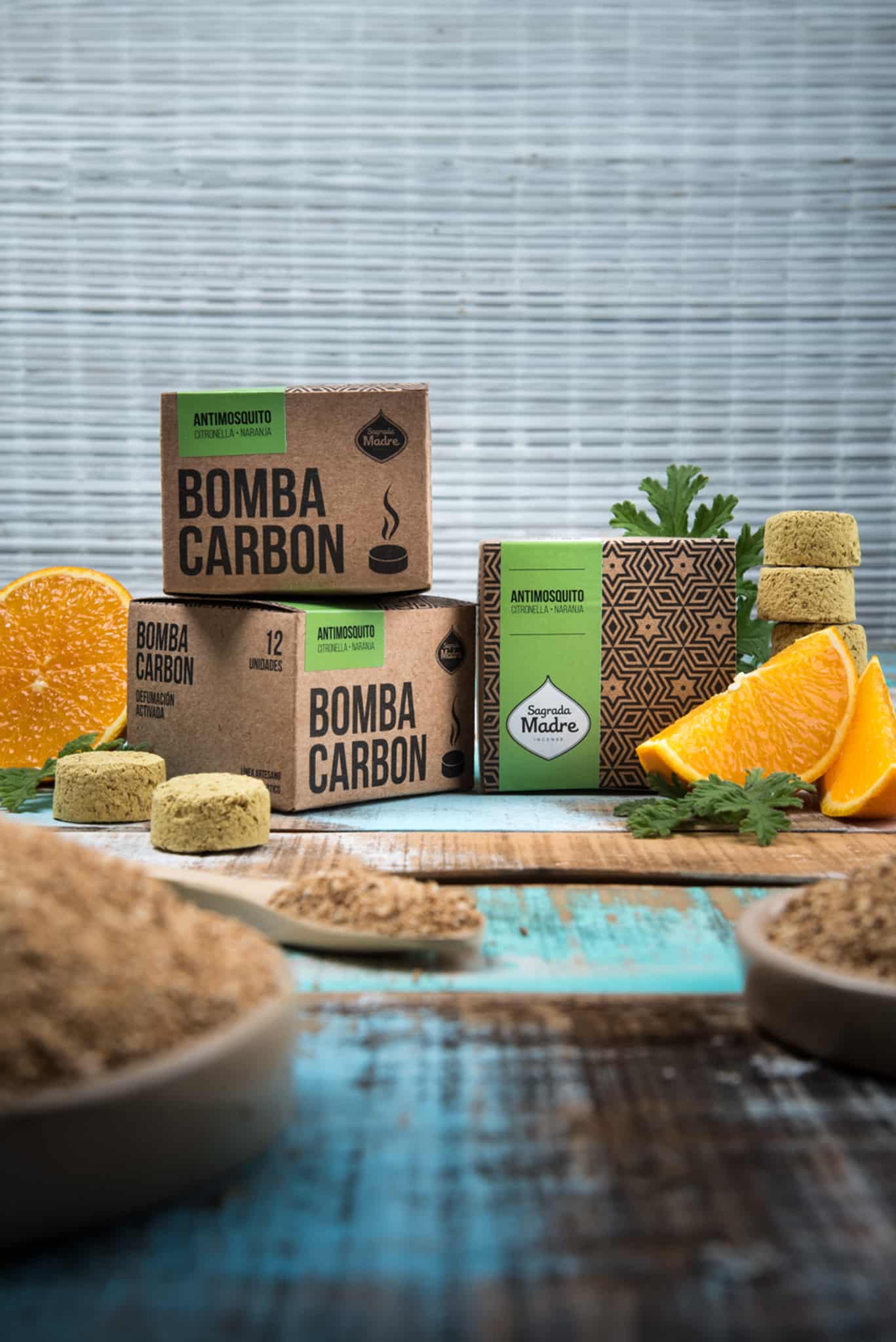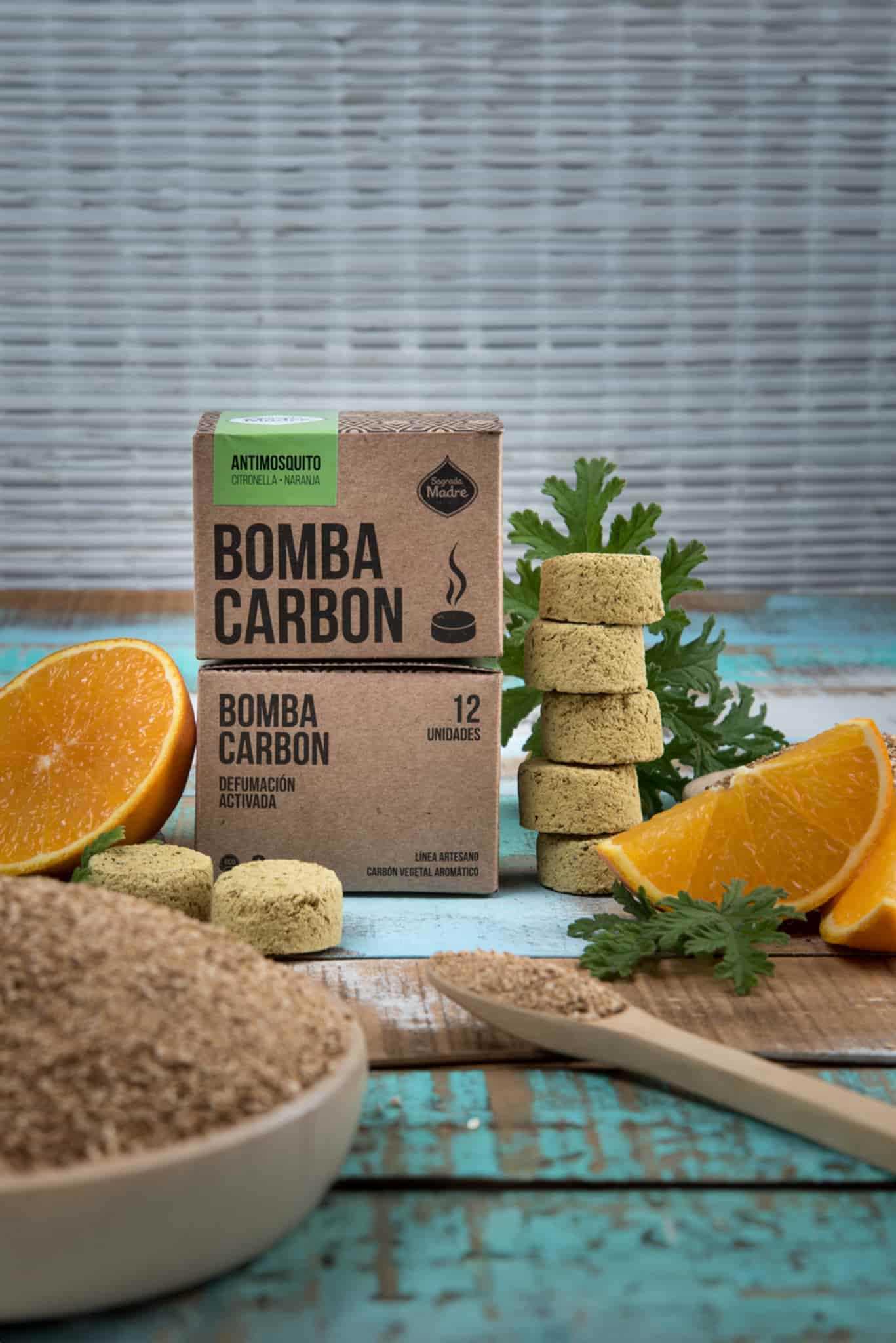 Hierbas, resinas, cedro, biomasa de frutas, carbón vegetal, aglutinante natural y sal.