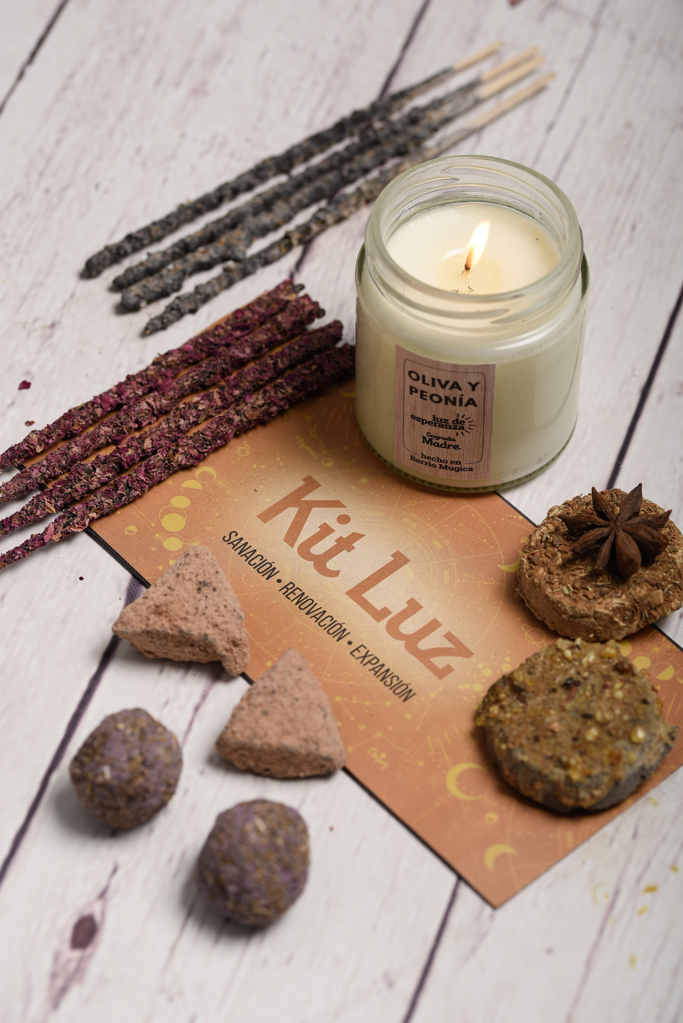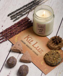 Contenido: 1 Vela de soja aromática, 8 sahumerios cortos, 2 bombitas premium, 2 pastillas defumadoras, 2 sahumerios triangulares.